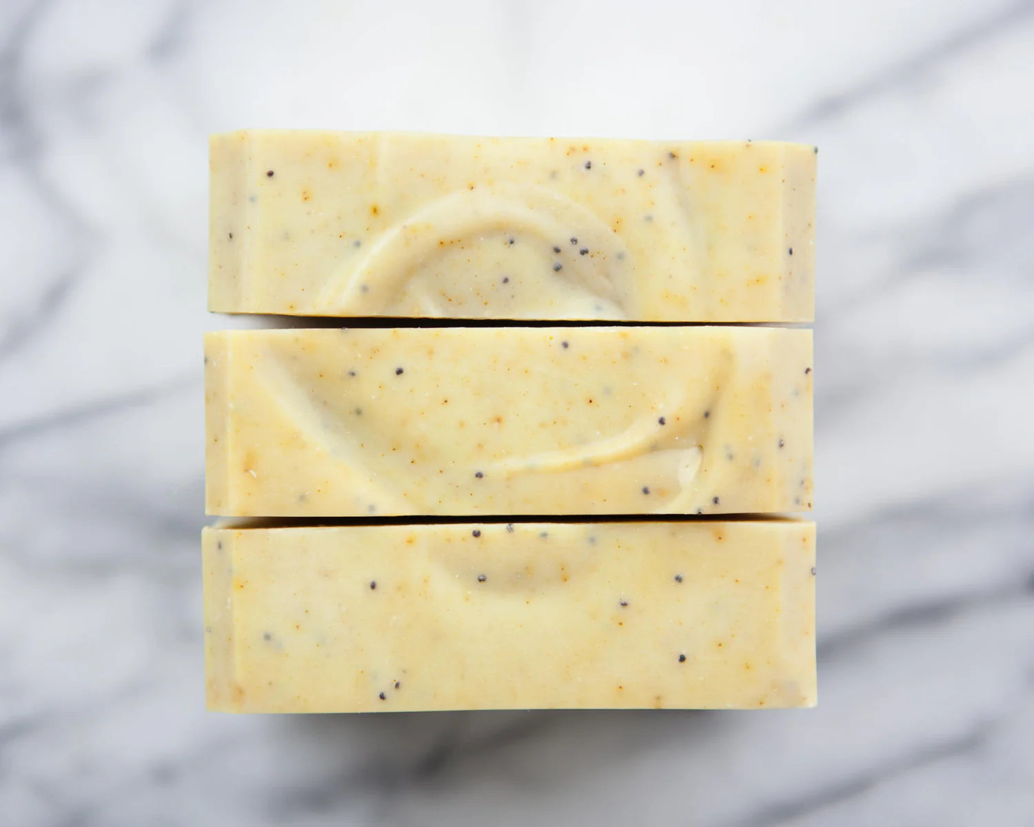 This cold-processed soap contains oils of coconut, organic sustainable palm & olive; turmeric, homegrown poppy seeds, as well as spearmint and lemon essential oils.